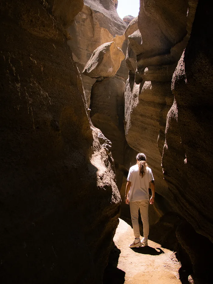 You’ll do the second at Malacara, a very special volcano that had a hydromagmatic eruption, which occurs when the lava comes in contact with water. Differently from the other volcanoes in the area, this kind of eruption created passages, caves, and chimneys that can be visited by entering the volcano.
