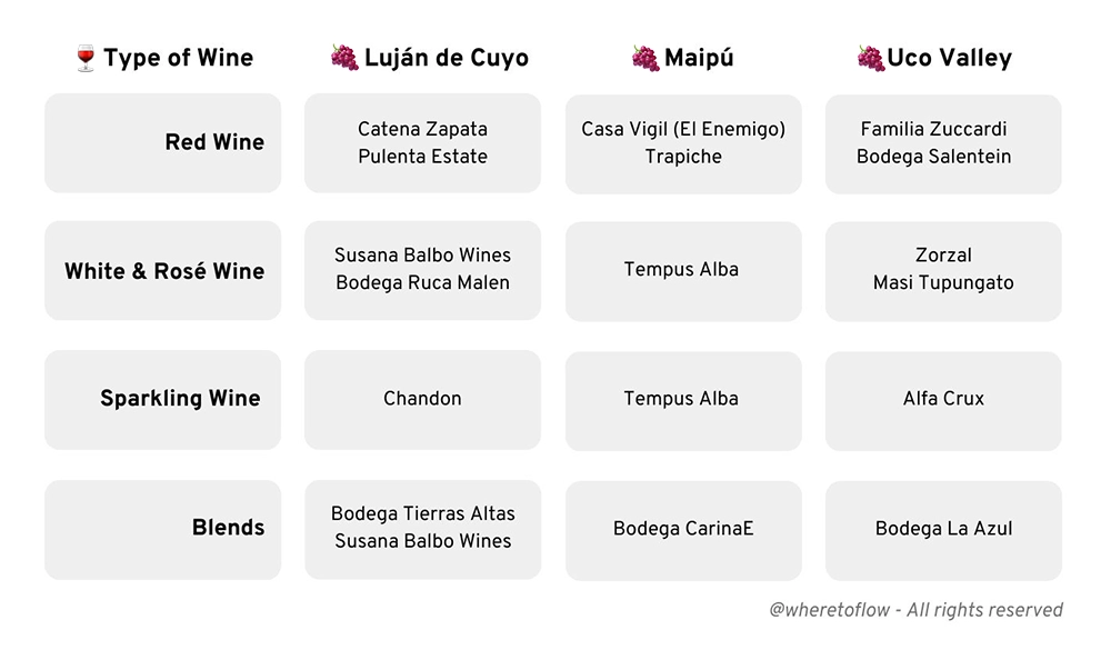 ๐ The best wineries in Uco Valley are: Alfa Crux, Familia Zuccardi, Bodega Salentein, Zorzal, Masi Tupungato, and Bodega La Azul.