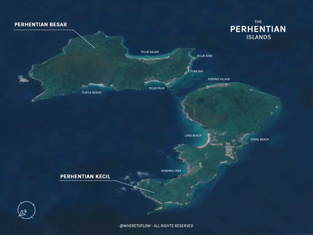 Youβll find most of the accommodation on this island located at Teluk Dalam (or Arwana Beach), the southern big bay. Tuna Bay and Teluk Pauh, facing Perhentian Kecil, are where most of the resorts are located.