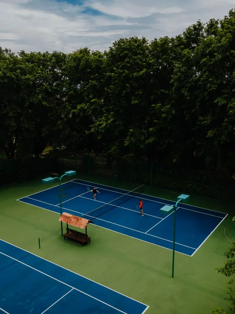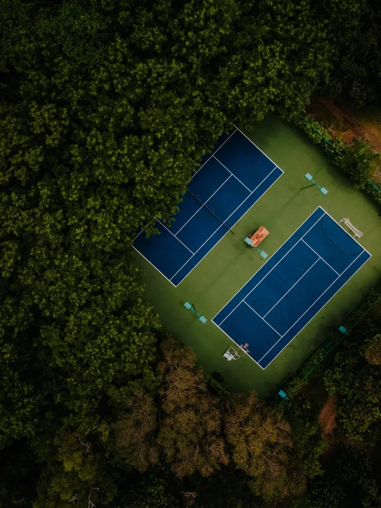 The gym is located very close to the Spa and you can get tennis gear here to enjoy their courts. We love that the tennis courts are located in the middle of nature!