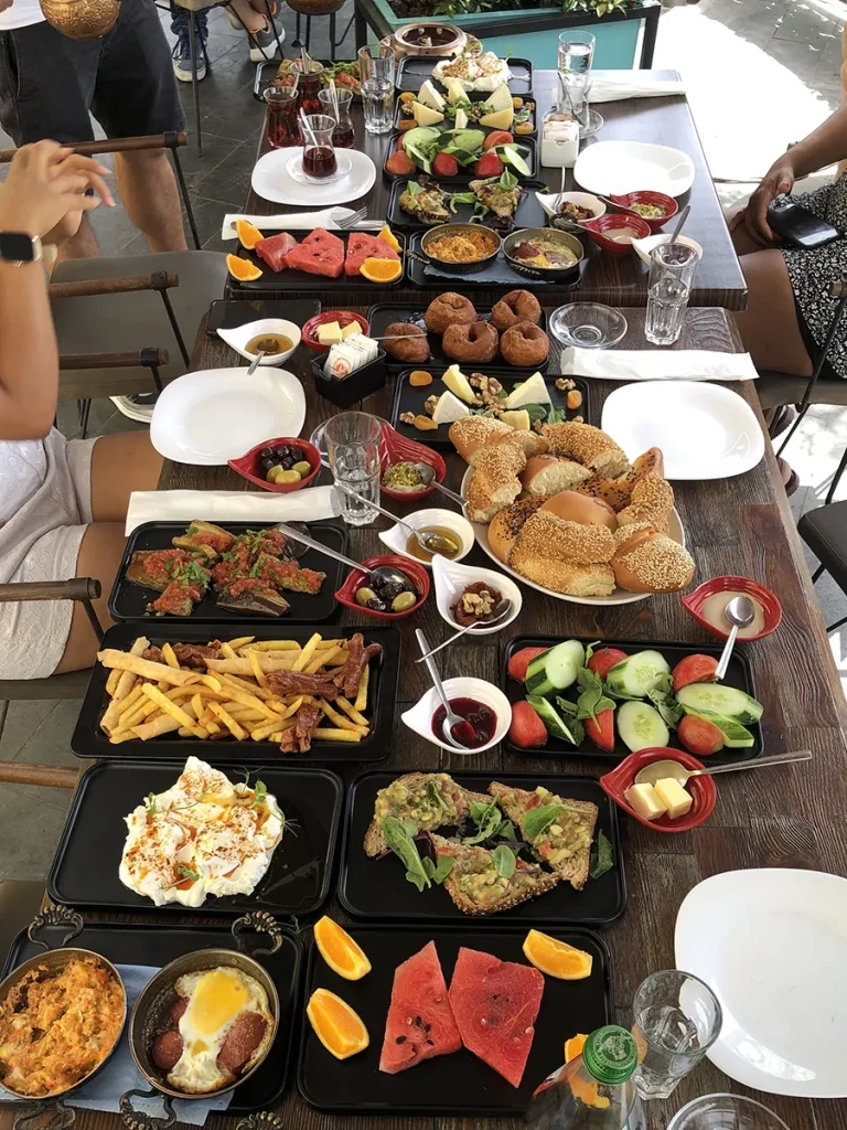 The sofa we’re sleeping on is also from a Turkish – Merhaba, Egemen! – so Carol and him took us to a Turkish restaurant to try their traditional breakfast. It’s more like a feast than anything else, and it is delicious!!